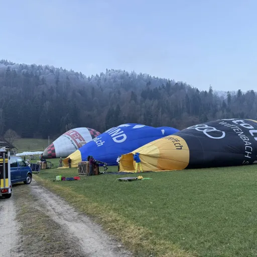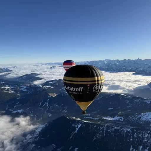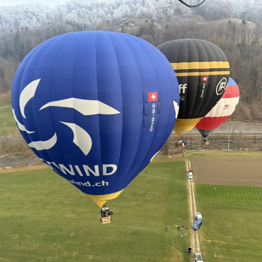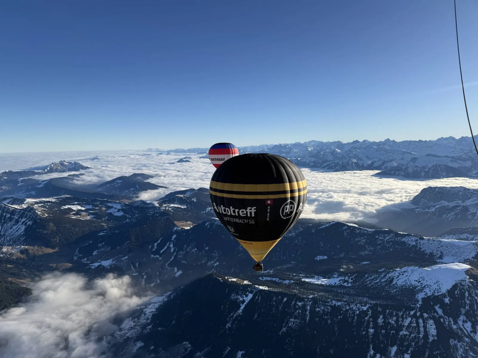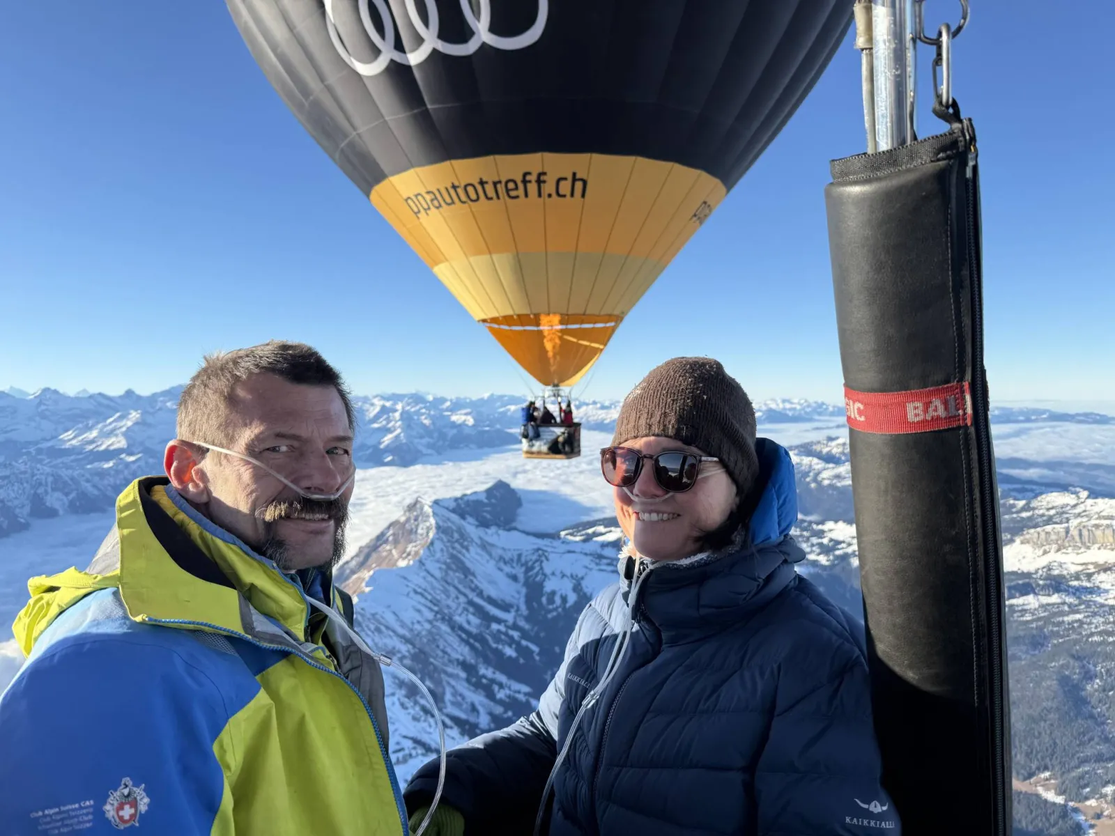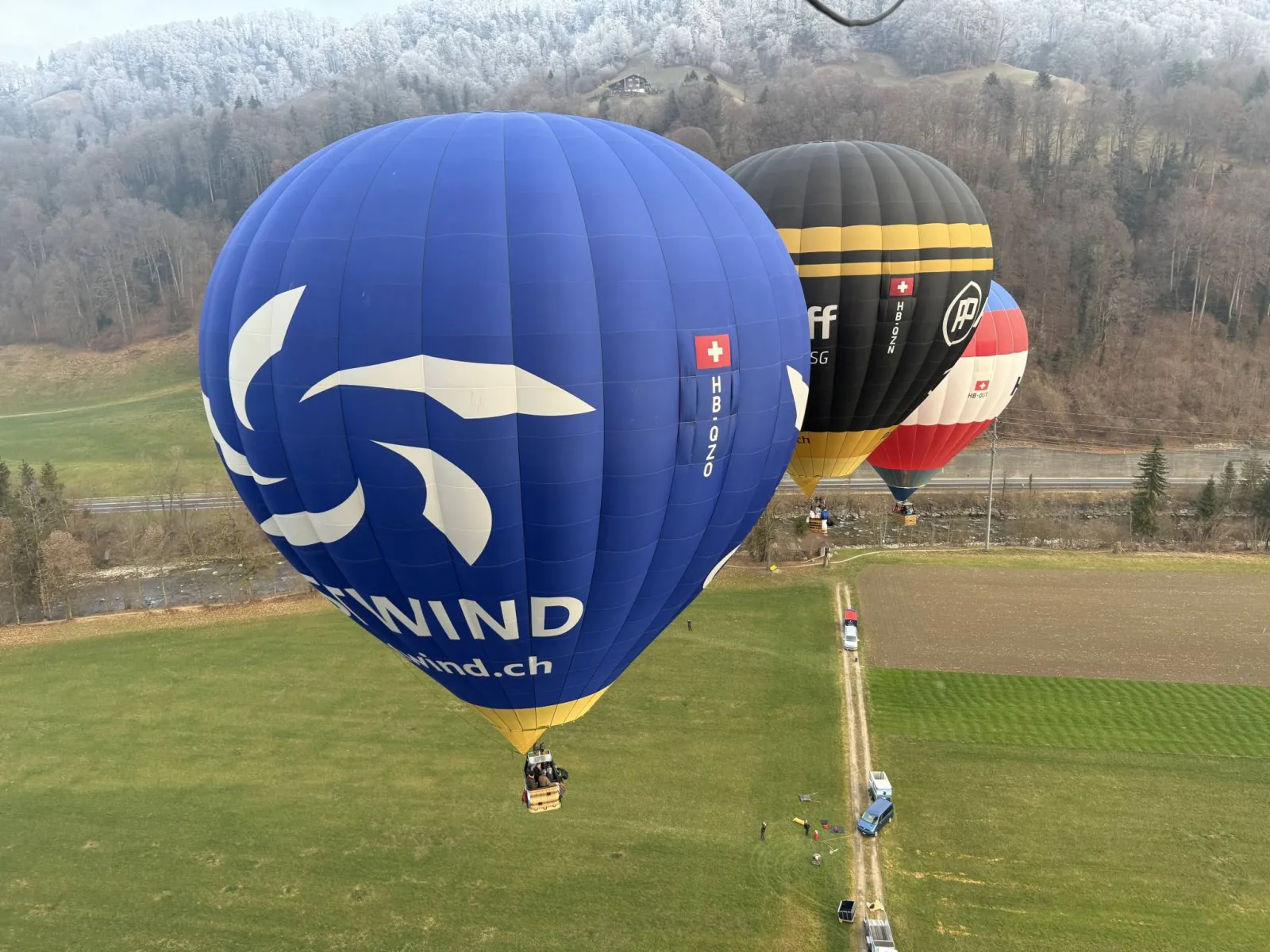 Am 30. Dezember durften wir ein ganz besonderes Abenteuer erleben: Mit vier Heißluftballonen starteten wir um 9:00 Uhr in der Nähe von Malters (LU) zu einer spektakulären Alpenüberquerung. als vierter Ballon ist Kurt Frieden mit von der Patrie. Kaum vom Boden gelöst, gewannen wir rasch an Höhe und schwebten lautlos über die majestätischen Berner Alpen, während sich unter uns eine winterliche Traumlandschaft eröffnete. Die knapp vierstündige Fahrt führte uns bis auf beeindruckende 5.200 Meter, wobei wir uns die meiste Zeit entspannt in etwa 4.500 Metern Höhe bewegten. Mit einer idealen Geschwindigkeit von bis zu 60–80 km/h glitten wir ruhig und sicher über Gipfel, Täler und endlose Schneeflächen. Ein Höhepunkt dieser Fahrt war natürlich die traumhafte Aussicht aufs Matterhorn.Trotz der großen Höhe war die Temperatur dank der sehr trockenen Luft überraschend angenehm und machte die Fahrt zu einem echten Genuss. Diese einzigartige Kombination aus Stille, Weite und Freiheit lässt sich kaum in Worte fassen – man muss sie selbst erlebt haben. Wer einmal die Alpen aus dieser Perspektive gesehen hat, trägt diese Ballonfahrt für immer im Herzen und will es wieder erleben.
