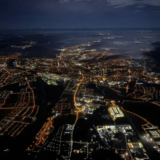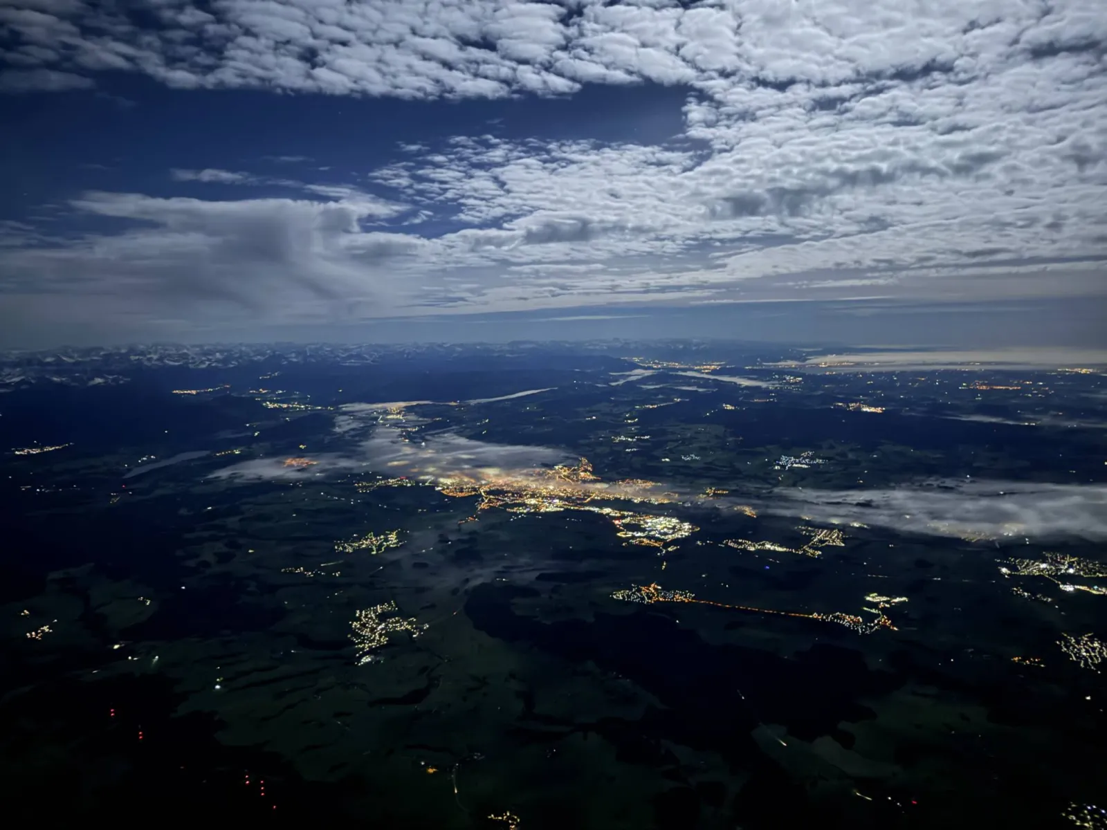 Unter uns lag das nächtliche Allgäu, friedlich und still. Über Kempten glitten wir dahin, begleitet nur vom sanften Getöse der fliessenden Gewässer und der funkelnden Sternenpracht über uns. Die Sicht war atemberaubend – die Welt schien endlos weit. Trotz der Dunkelheit erkannten wir Täler, Seen und Straßen, die wie helle Fäden durchs Land zogen.