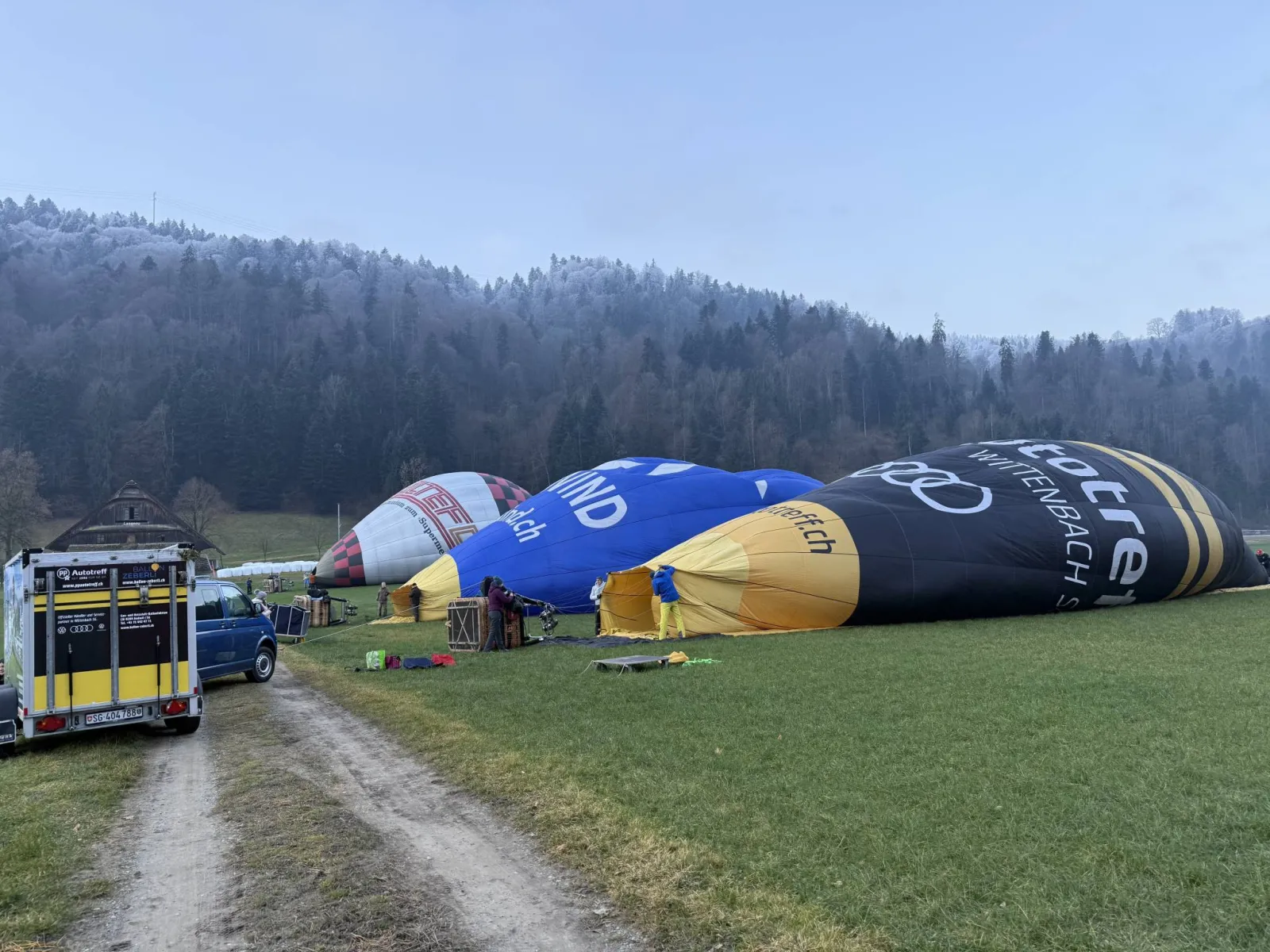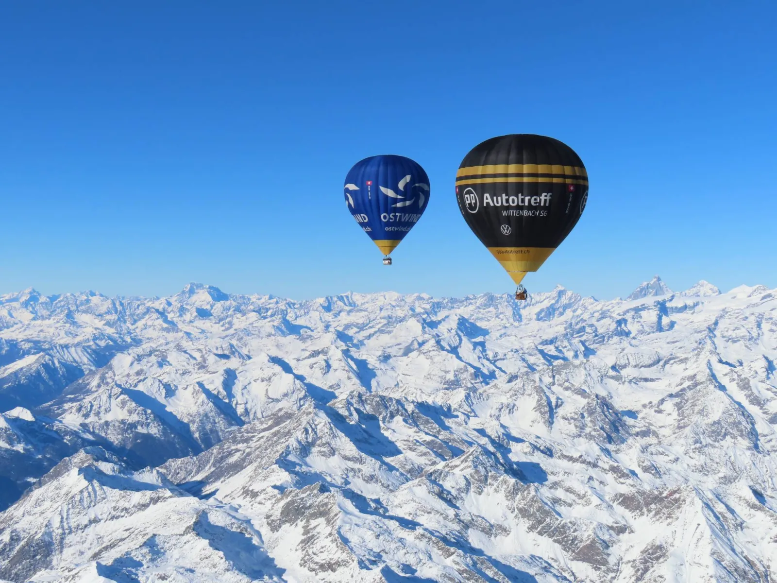 Am 30. Dezember durften wir ein ganz besonderes Abenteuer erleben: Mit vier Heißluftballonen starteten wir um 9:00 Uhr in der Nähe von Malters (LU) zu einer spektakulären Alpenüberquerung. als vierter Ballon ist Kurt Frieden mit von der Patrie. Kaum vom Boden gelöst, gewannen wir rasch an Höhe und schwebten lautlos über die majestätischen Berner Alpen, während sich unter uns eine winterliche Traumlandschaft eröffnete. Die knapp vierstündige Fahrt führte uns bis auf beeindruckende 5.200 Meter, wobei wir uns die meiste Zeit entspannt in etwa 4.500 Metern Höhe bewegten. Mit einer idealen Geschwindigkeit von bis zu 60–80 km/h glitten wir ruhig und sicher über Gipfel, Täler und endlose Schneeflächen. Ein Höhepunkt dieser Fahrt war natürlich die traumhafte Aussicht aufs Matterhorn.Trotz der großen Höhe war die Temperatur dank der sehr trockenen Luft überraschend angenehm und machte die Fahrt zu einem echten Genuss. Diese einzigartige Kombination aus Stille, Weite und Freiheit lässt sich kaum in Worte fassen – man muss sie selbst erlebt haben. Wer einmal die Alpen aus dieser Perspektive gesehen hat, trägt diese Ballonfahrt für immer im Herzen und will es wieder erleben.