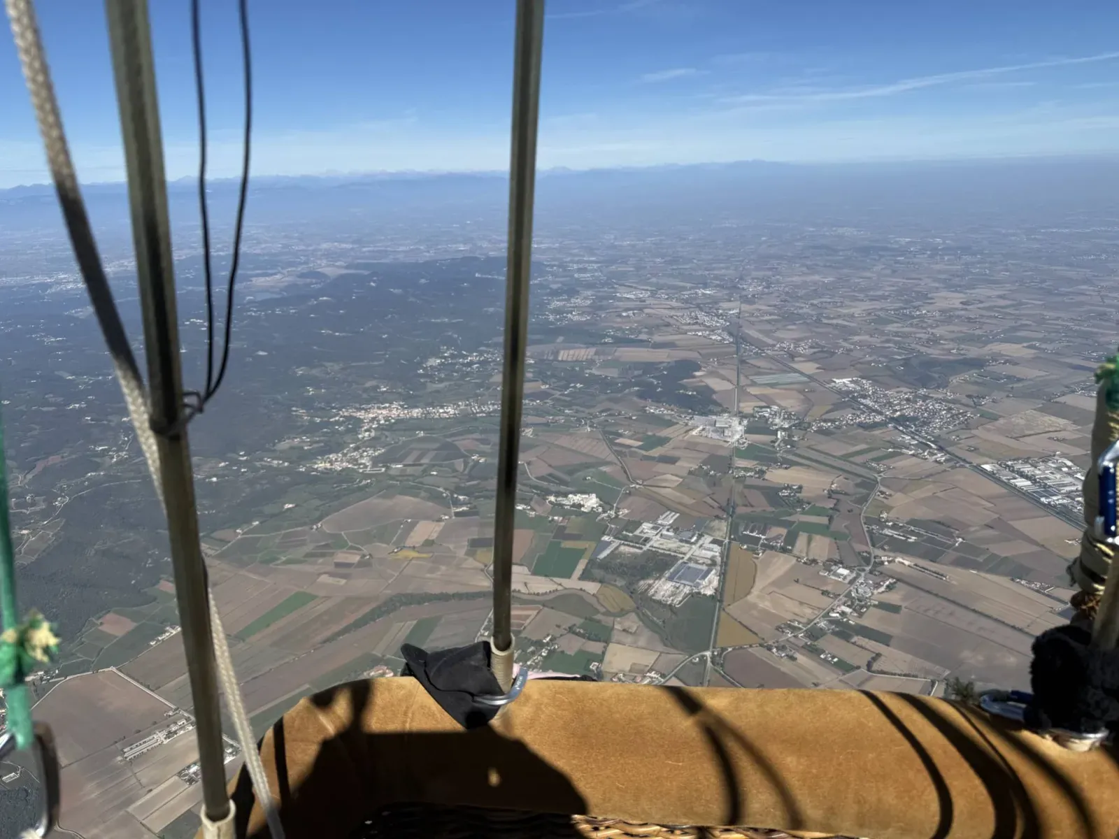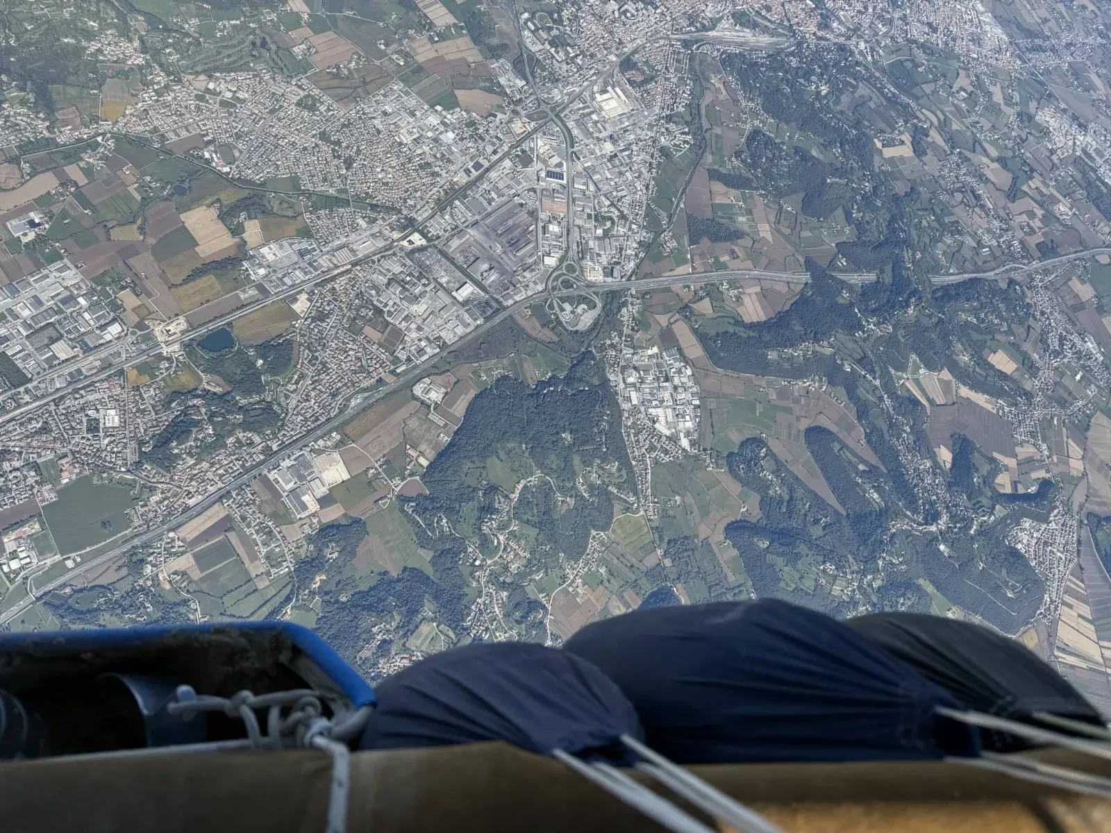 Die goldenen Strahlen brachen durch die Gipfel, die Schatten tanzten, und wir standen sprachlos im Korb. Dieser Moment, das Gefühl, über allem zu schweben, war schlicht unbeschreiblich. Mit einer Höchstgeschwindigkeit von 44 km/h glitten wir weiter Richtung Süden, bis wir nach rund 370 Kilometern in Italien, in der schönen, herbstlichen Poebene sanft zur Landung ansetzen.